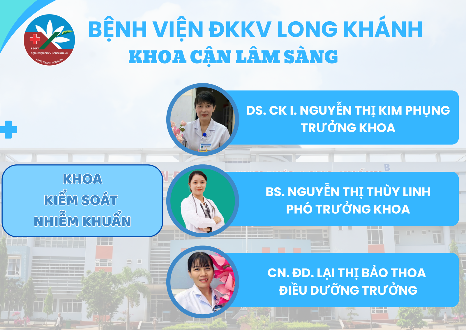 Khoa kiểm soát nhiễm khuẩn là khoa cận lâm sàng. Tổ chức thực hiện, hướng dẫn, giám sát, kiểm tra, công tác kiểm soát nhiễm khuẩn trong toàn Bệnh viện.