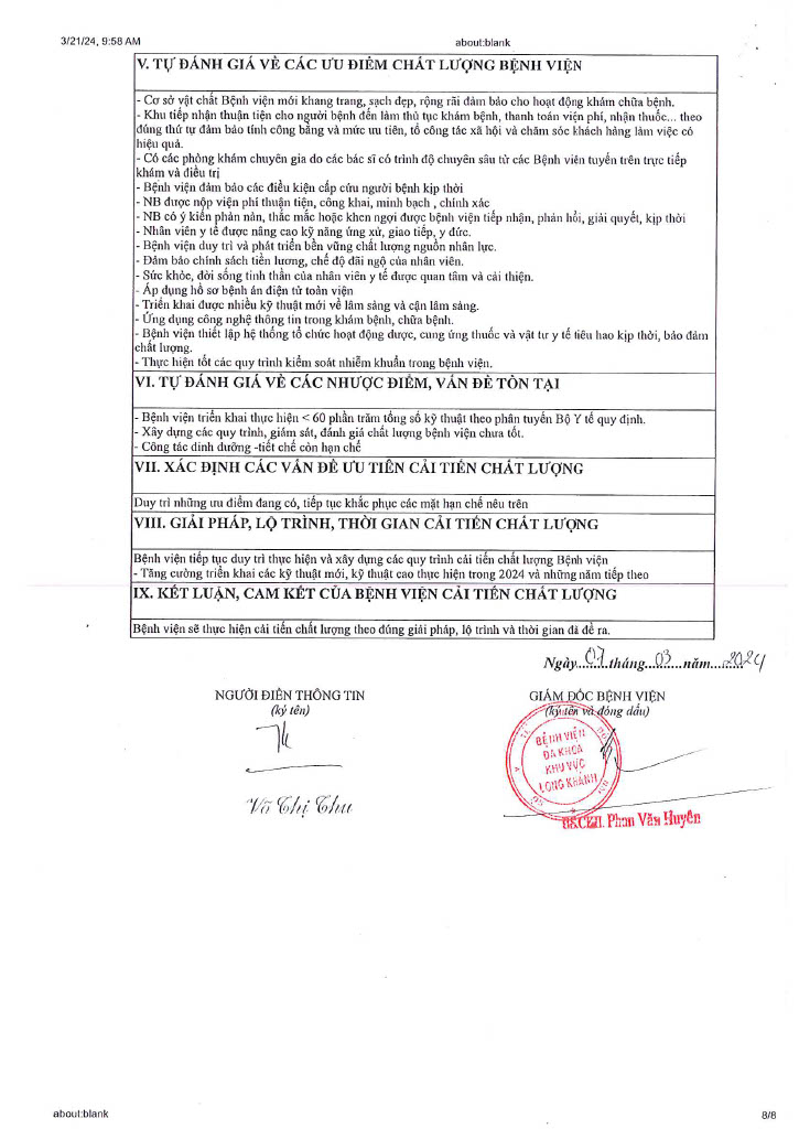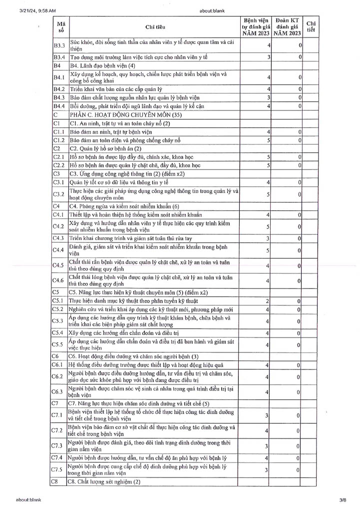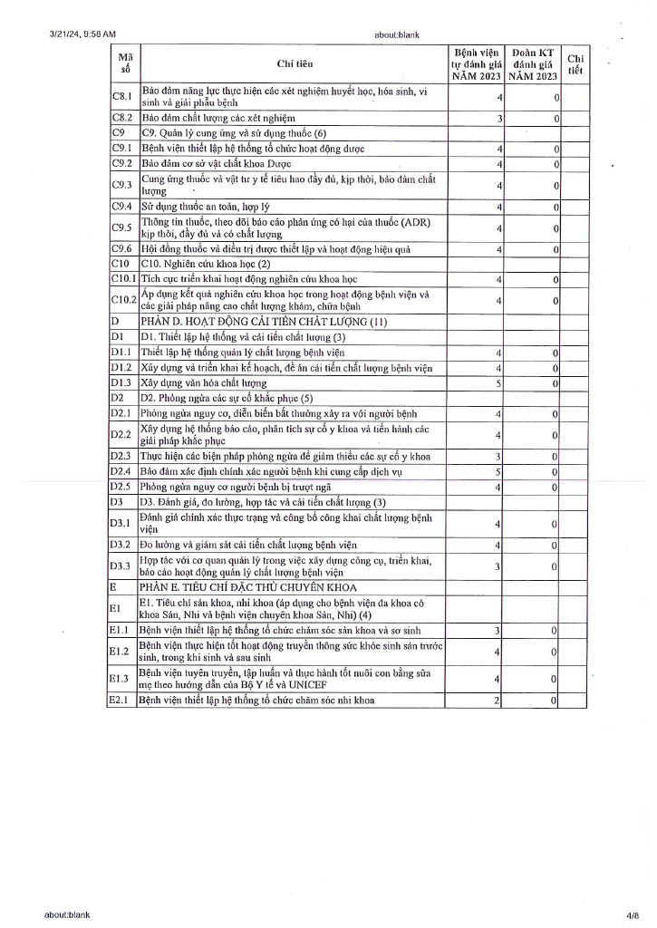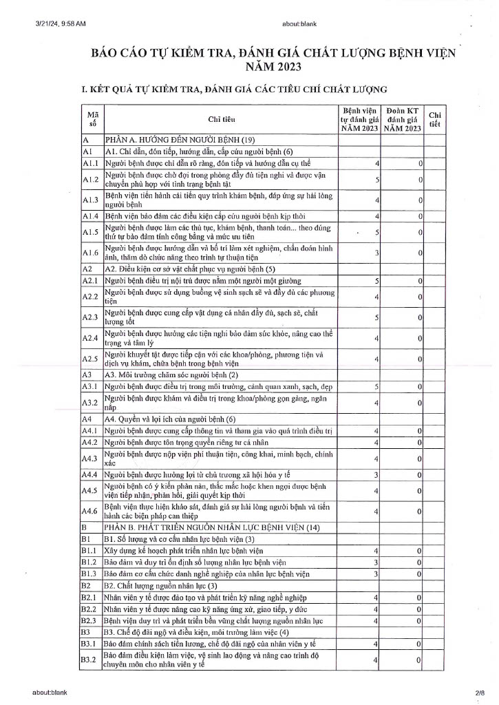 BÁO CÁO TỰ KIỂM TRA, ĐÁNH GIÁ CHẤT LƯỢNG BỆNH VIỆN NĂM 2023